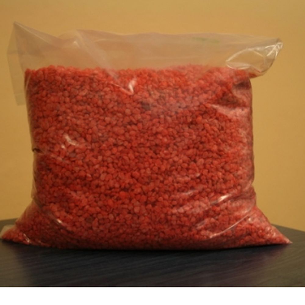 Červený dekorační akvarijní štěrk. Zrnitost štěrku je 3-4 mm. Obsah balení je 2 l