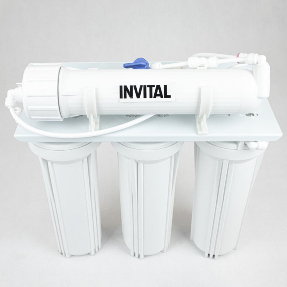Tato osmóza obsahuje také DI filtr, který po průchodu membránou vodu ještě dočišťuje a snižuje její vodivost. Ve filtru je totiž směs anexu a katexu, díky níž lze dosáhnout vodivosti až 0,1uS/cm! Cena náhradních filtrů je opět příznivější.