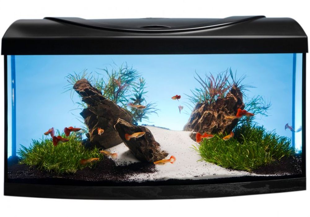 akvárium 60x30x30 (délka x šířka x výška) o objemu 54 L čelní sklo je vypouklé