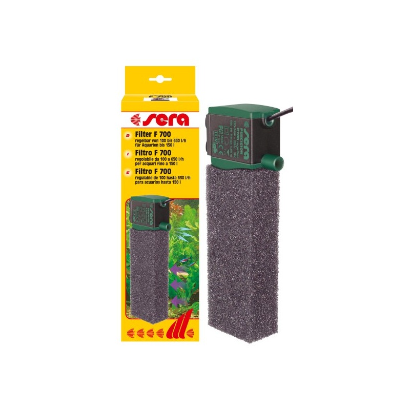 Sera vnitřní filtry se opírají o osvědčená sera ponorná čerpadla. Jsou vybaveny velkými filtračními molitany a kombinuje výhody vnitřních filtr s těmito proudovými čerpadly. Molitan chrání malé tvory (např. mladé rybky) před jejich nasátím do čerpadla. sera filtry F s regulací se hodí pro provoz sera CO2 reaktoru.