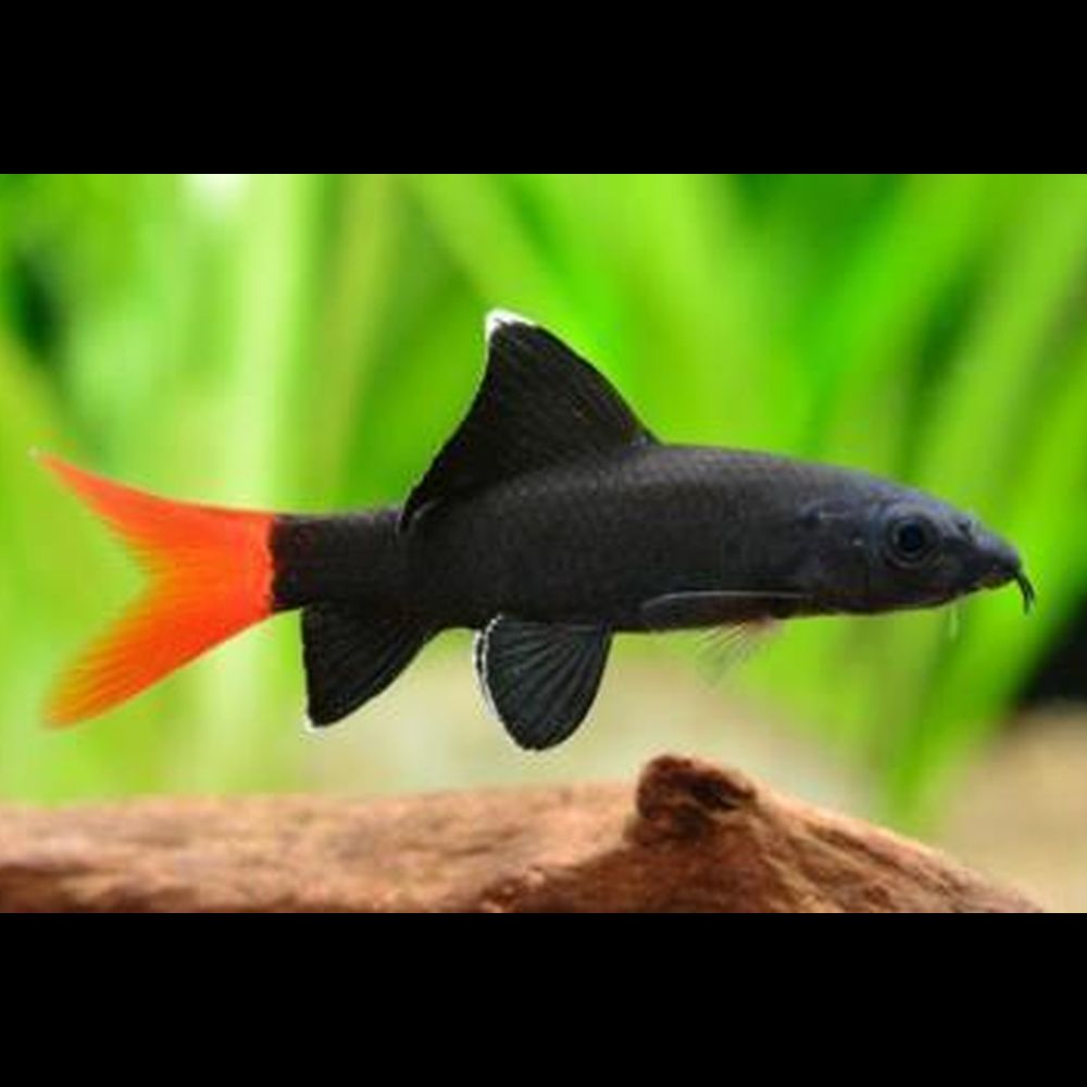 Charakteristika: Tělo má černé s výrazně červeným ocasem. V dospělosti obhajuje své území. V menším akváriu chovejte jednotlivě, jinak dominantní ryba ostatní ubije. Vyžaduje útočiště mezi kameny a kořeny a dále pravidelnou výměnu vody. Je dobrým skokanem, nádrž musí být přikrytá. Někdy když má hlad okusuje z povrchu řasu jako přísavky.