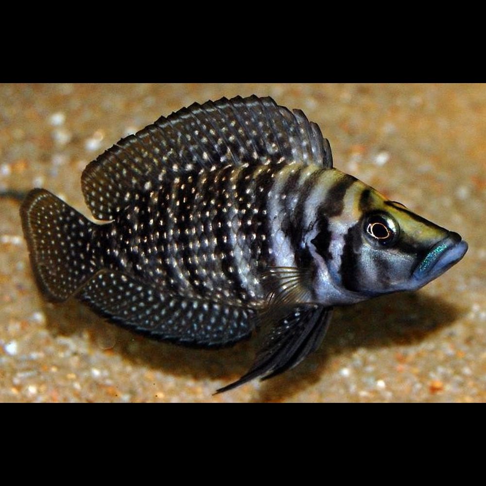 Charakteristika: Je velice agresivní ale zato méně pohyblivý. Má rád jeskyňky mezi skálami a kameny. Roste pomalu a je méně aktivný (i v krmení). Tělo je černého zbarvění s bledými tečkami. Vyžaduje poměrně mnoho místa … až 200l a to pouze pro 2 samce a 3 – 4 samice. Je vhodné je chovat jednodruhově.